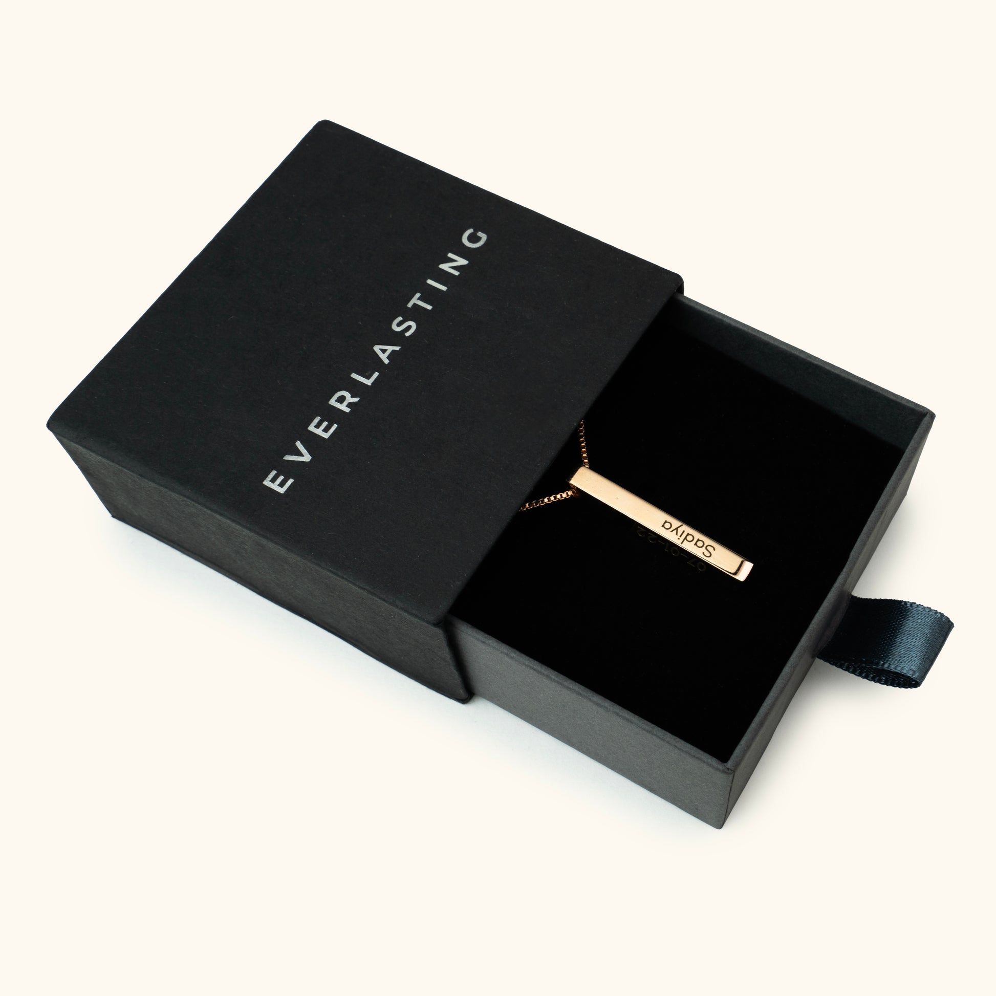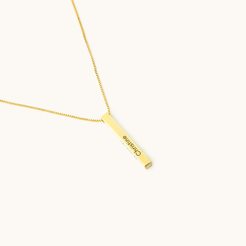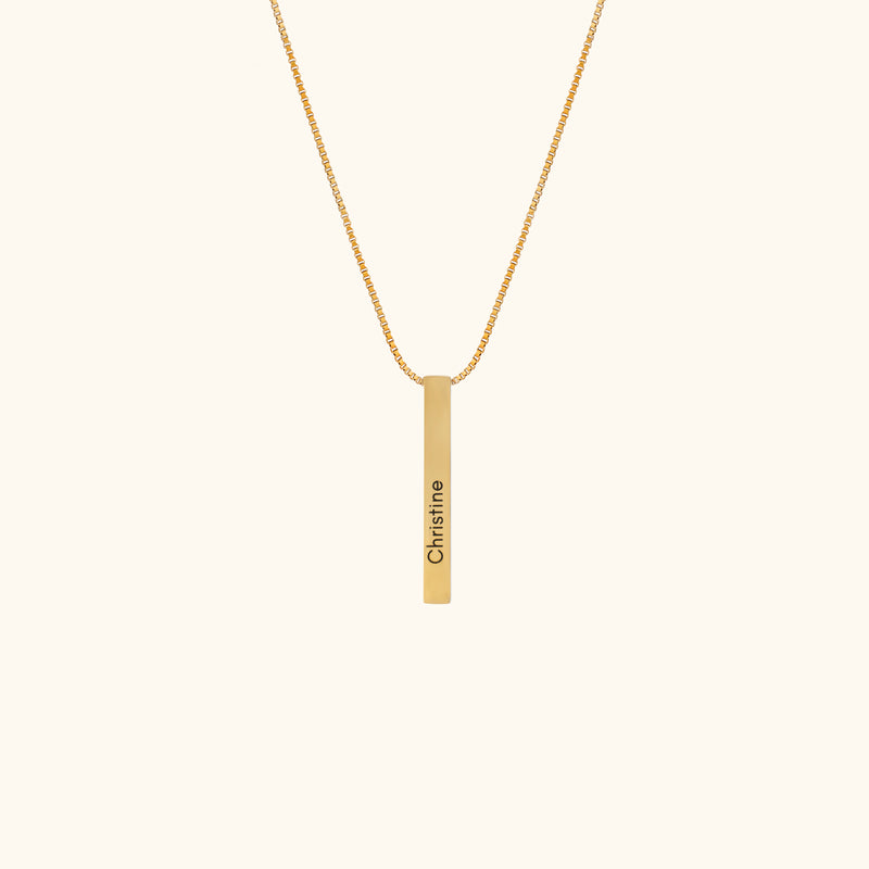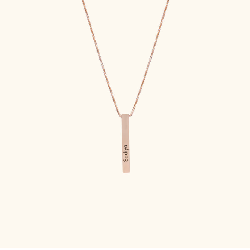Elevate your style with our Personalized Bar Necklace - a sleek and modern accessory that's a true reflection of your individuality. Crafted with precision and attention to detail, this bar necklace offers the perfect canvas for your chosen engraving, whether it's a name, date, or meaningful phrase. The polished metal contrasts elegantly with the customizable bar, creating a timeless piece that's both sophisticated and sentimental. Whether worn alone or layered, it's a versatile addition to your collection. Embrace the essence of you or give a cherished gift that speaks volumes, with our exquisite Personalized Bar Necklace.