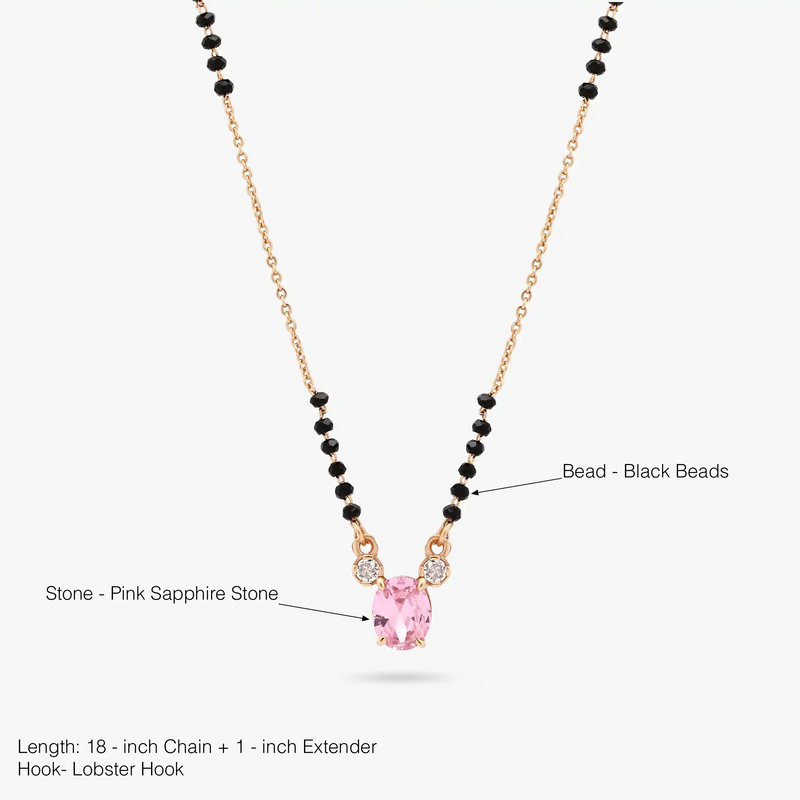 The Aarohi Mangalsutra exquisitely blends tradition with contemporary elegance, making it a perfect emblem of your enduring love. Featuring a beautifully crafted pendant paired with a sleek, durable chain, it complements any attire with grace and sophistication. Its thoughtful design ensures both style and comfort, allowing you to celebrate your lifelong commitment every day. Choose the Aarohi Mangalsutra to honor your special bond with a timeless piece that speaks volumes.