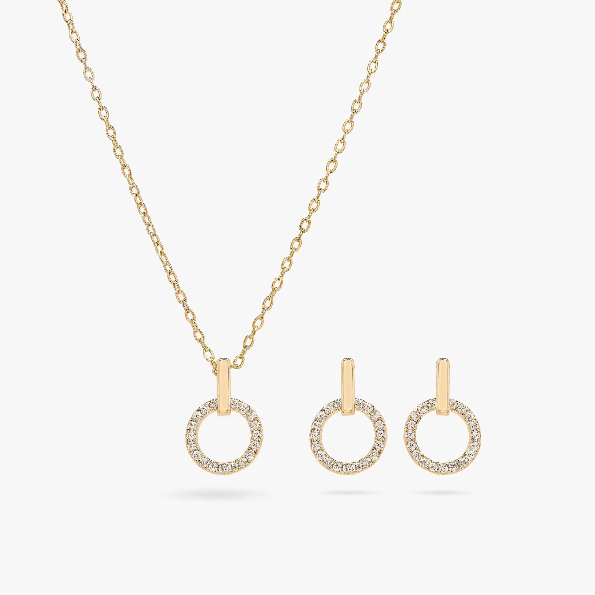 Celebrate the infinite nature of love with the Circle of Love , a refined and elegant jewelry ensemble that symbolizes the endless bond between two hearts. Featuring a circular design adorned with sparkling diamonds, this set includes a necklace and matching earrings, making it a perfect expression of devotion and affection.