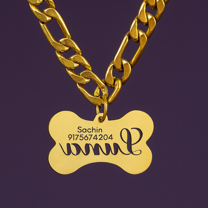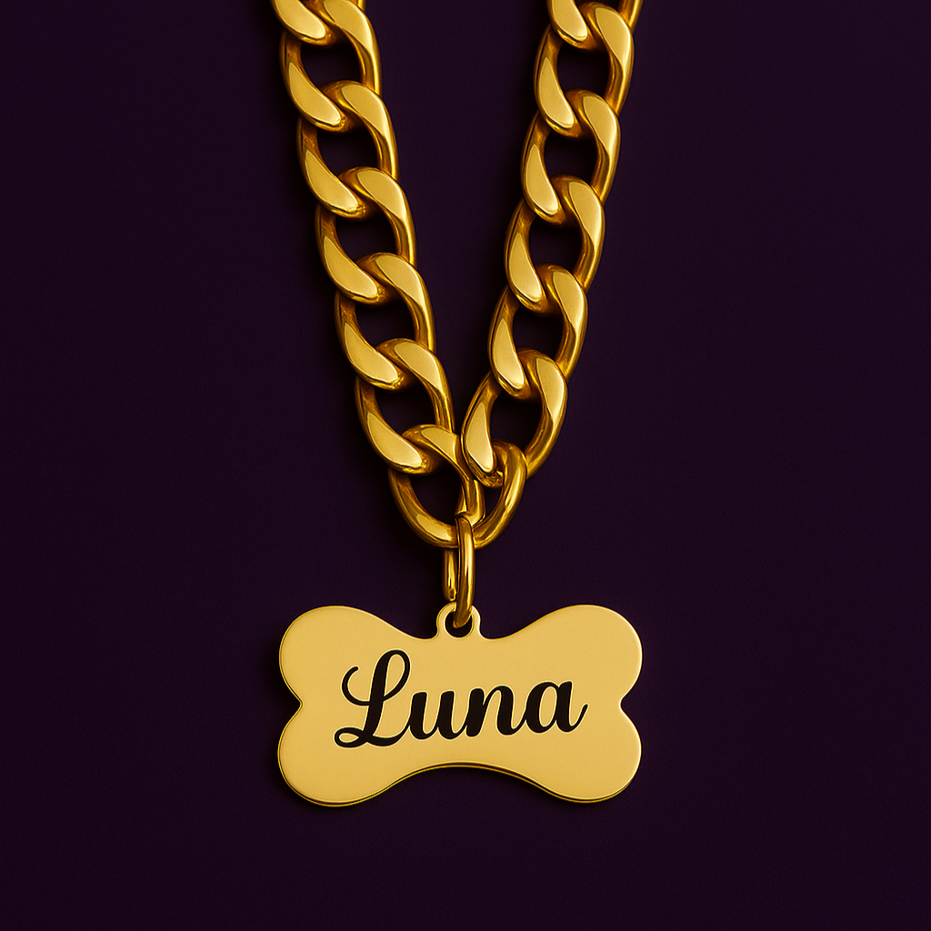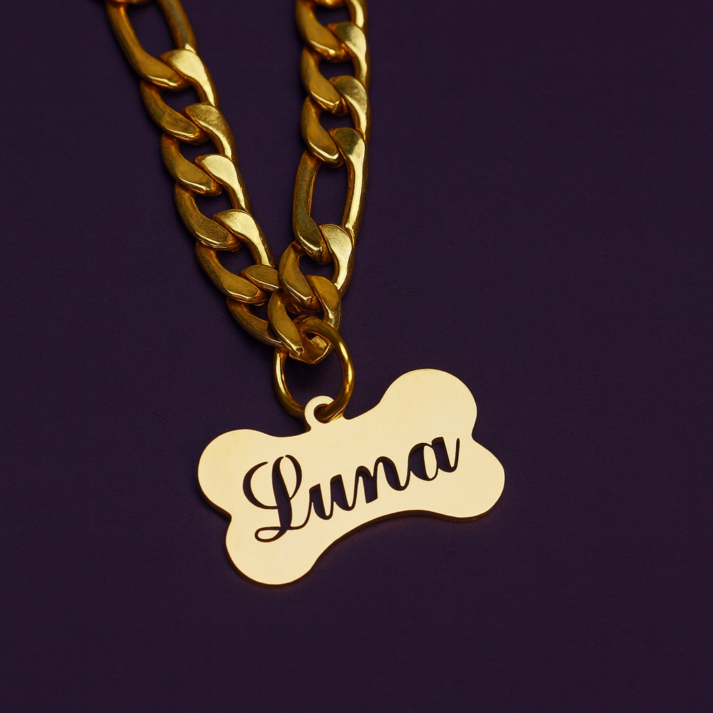 Keep your pet safe and stylish with this Pet Name Necklace designed specifically for dogs. It prominently features your pet’s name along with your contact details, ensuring that if your furry friend ever gets lost, anyone who finds them can quickly reach you.