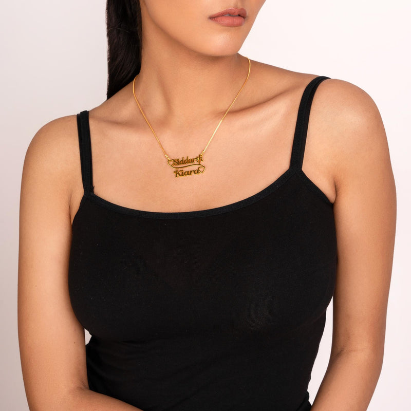 Celebrate your everlasting bond with the Dual Hearts Couple Name Necklace, a personalized piece that beautifully intertwines two hearts and two names. Symbolizing love, unity, and togetherness, this necklace is a meaningful keepsake designed for couples who cherish their connection.