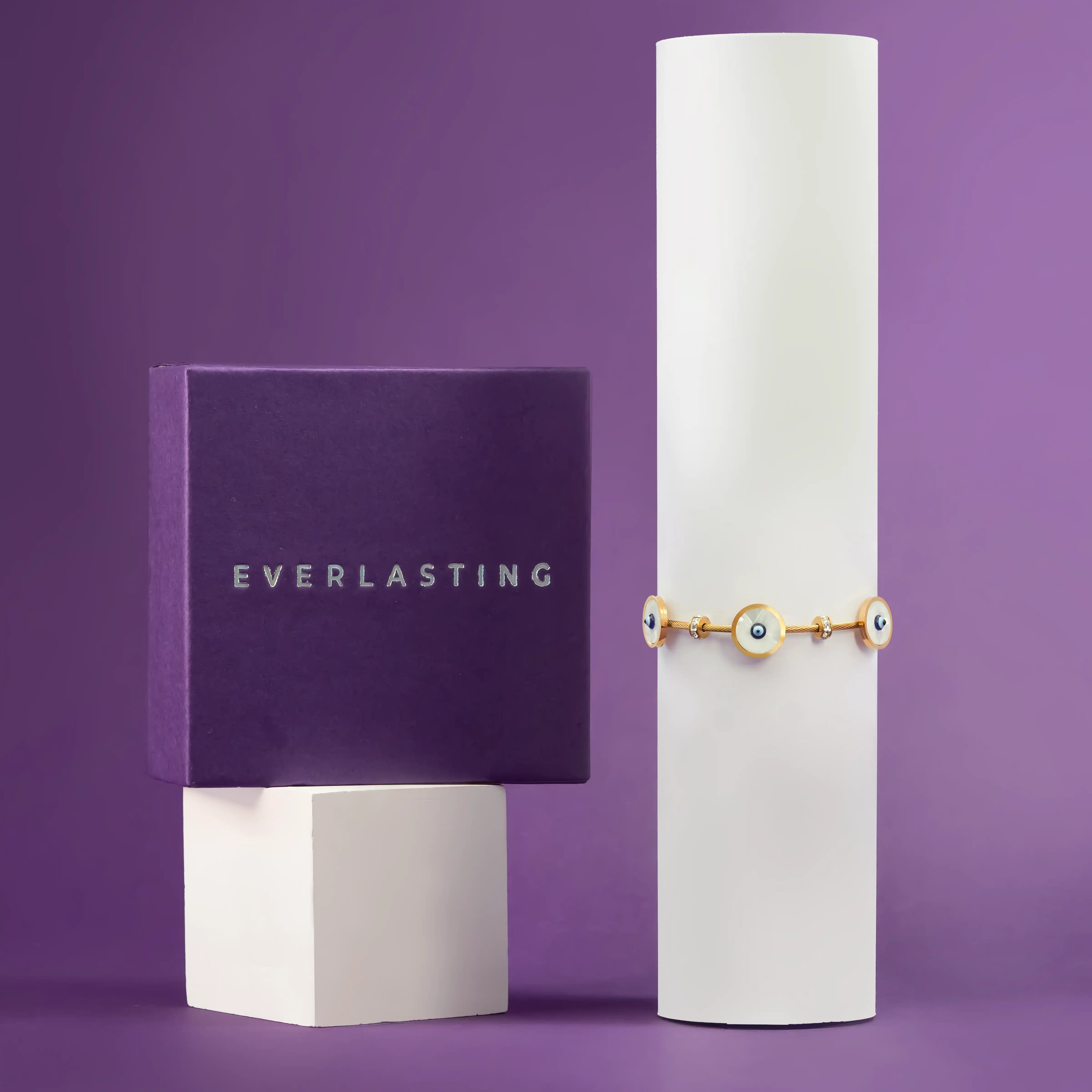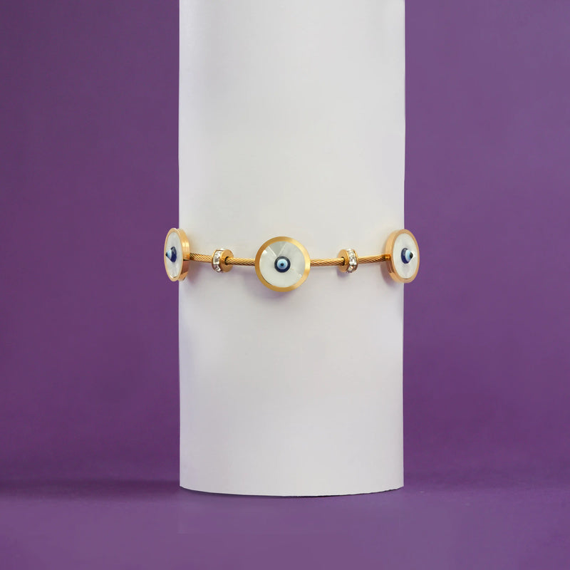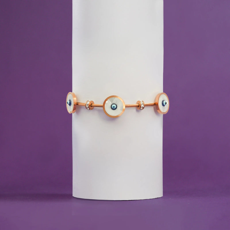 Embrace protection and timeless style with the Evil Eye Bangle, a powerful symbol of positivity and grace. This intricately designed bangle blends tradition with modern elegance, making it the perfect accessory for any occasion.