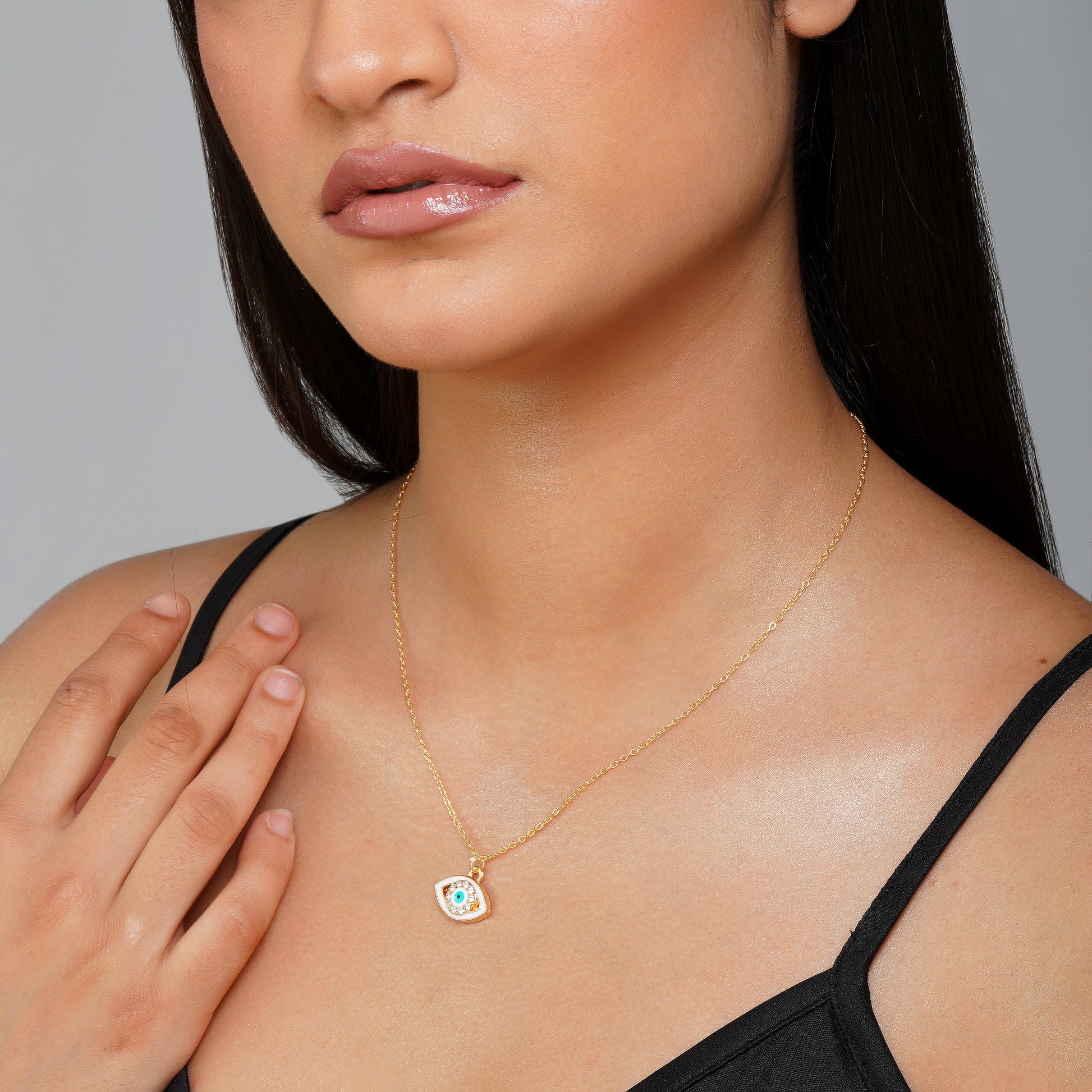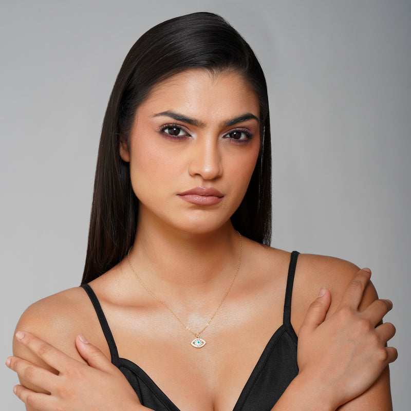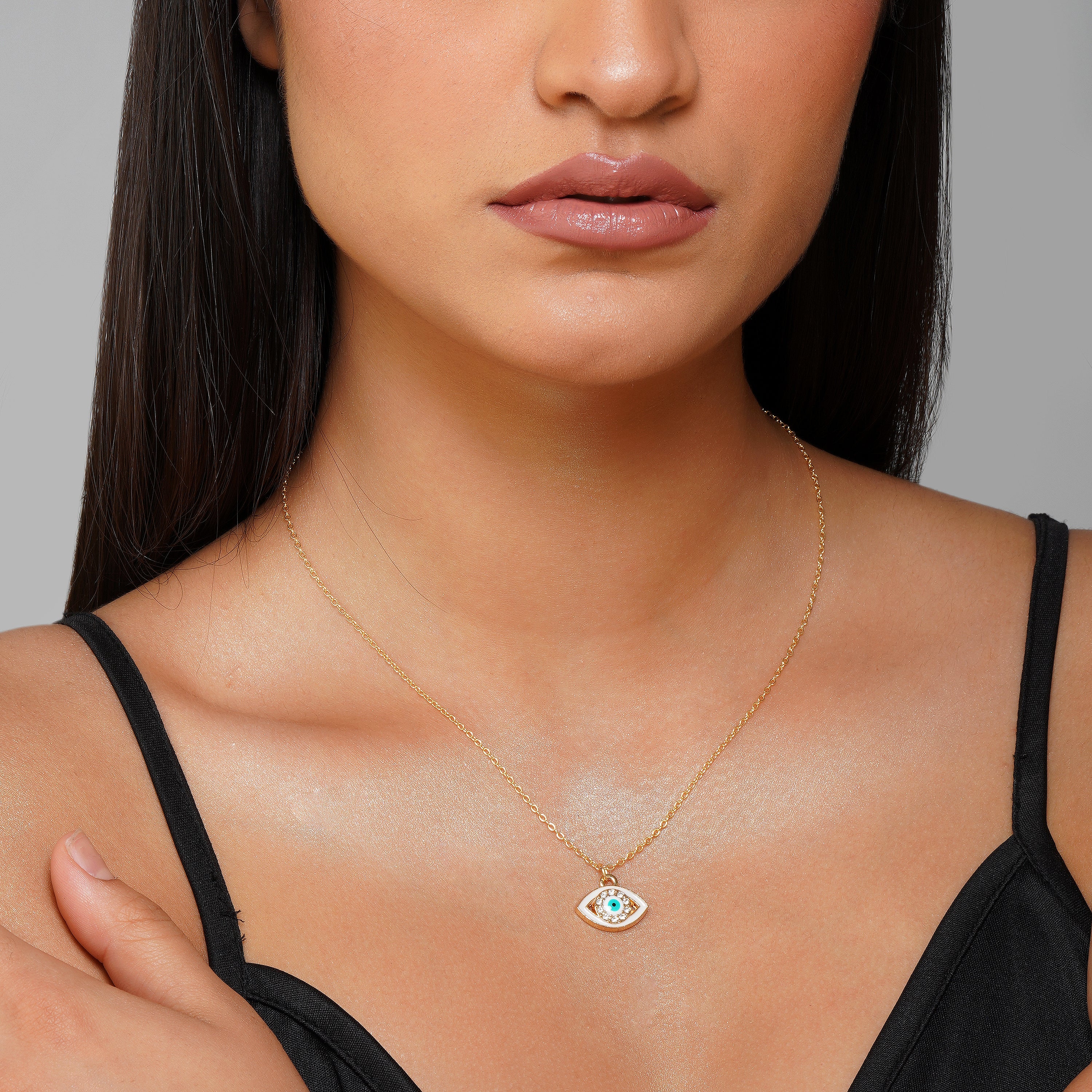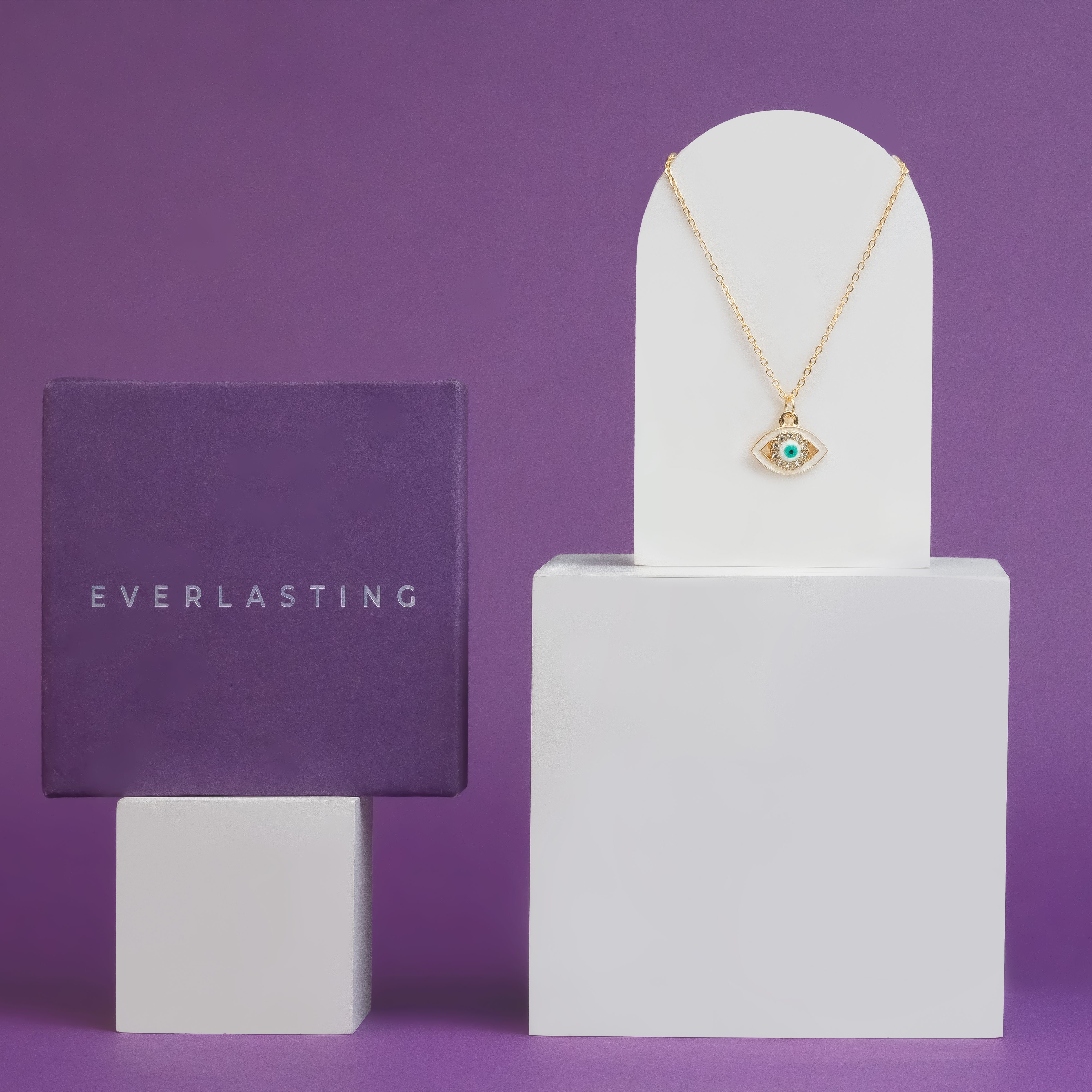 Ward off negativity in style with the Everlasting Evil Eye Necklace, a captivating piece that combines ancient symbolism with modern elegance. This stunning necklace features a beautifully detailed evil eye pendant, designed to protect and bring good fortune, all set against a radiant gold polished chain.