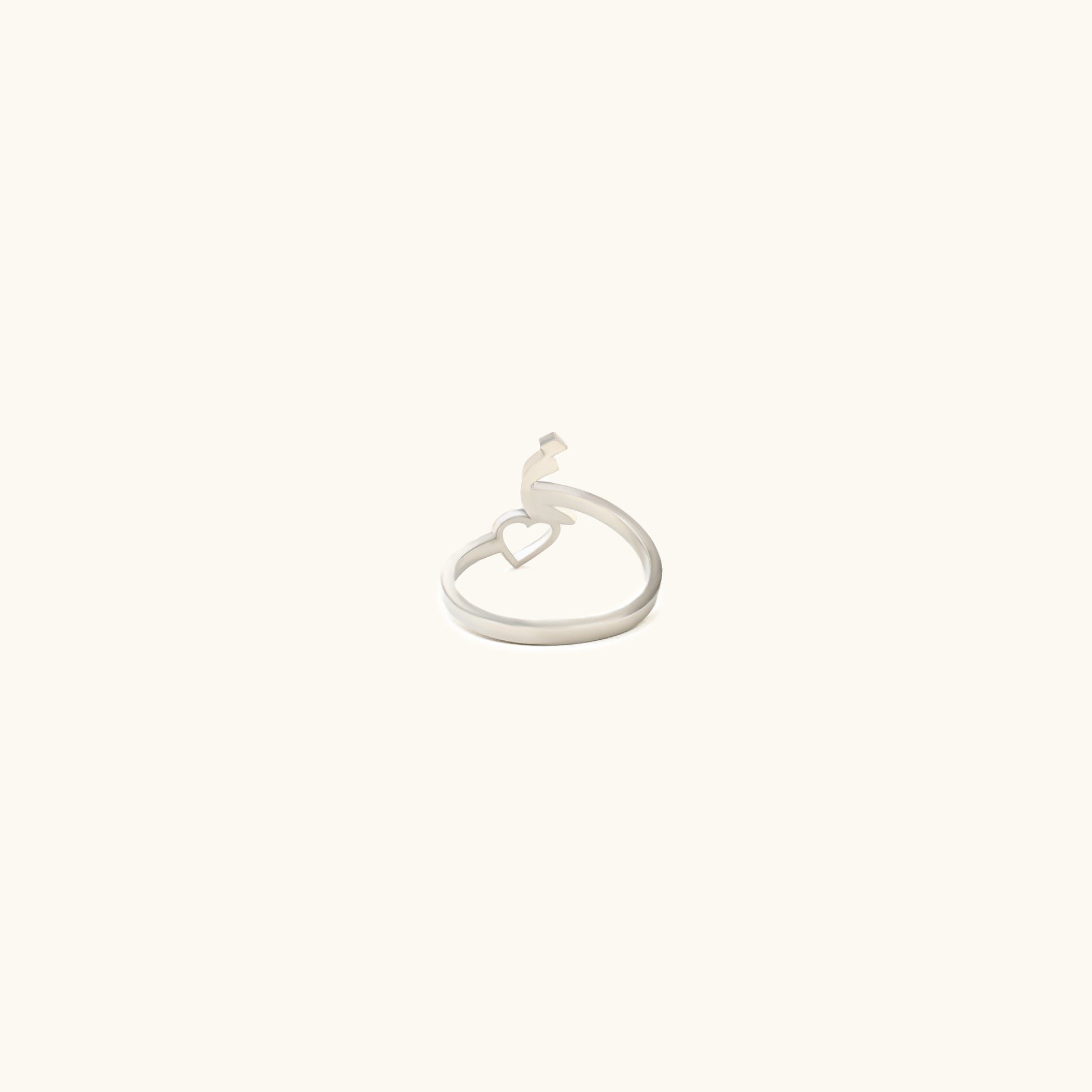 The ring is designed with a heart on one end of the ring and an Arabic letter on the other end. This is a resizable ring. You need to select from the options which letter you would like.