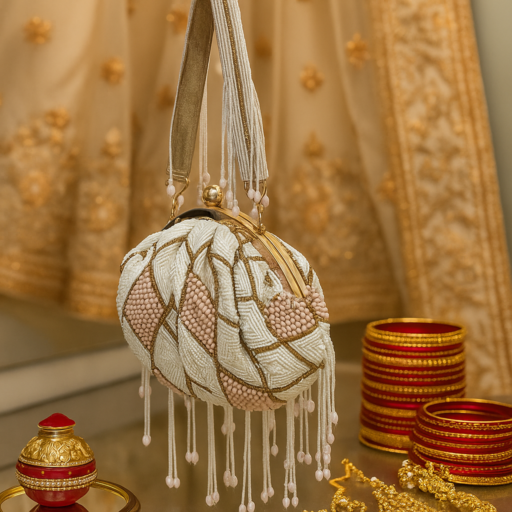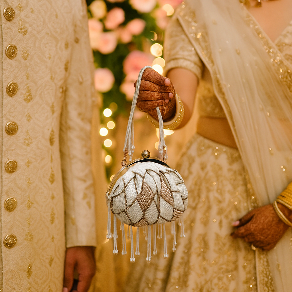 Experience timeless elegance with the Leher clutch, a perfect blend of traditional charm and festive allure. Crafted to add a royal touch to your ensemble, this clutch elevates your look while keeping essentials close. Ideal for special occasions, its rich design ensures you stand out with grace and sophistication. Make every celebration memorable with Leher.