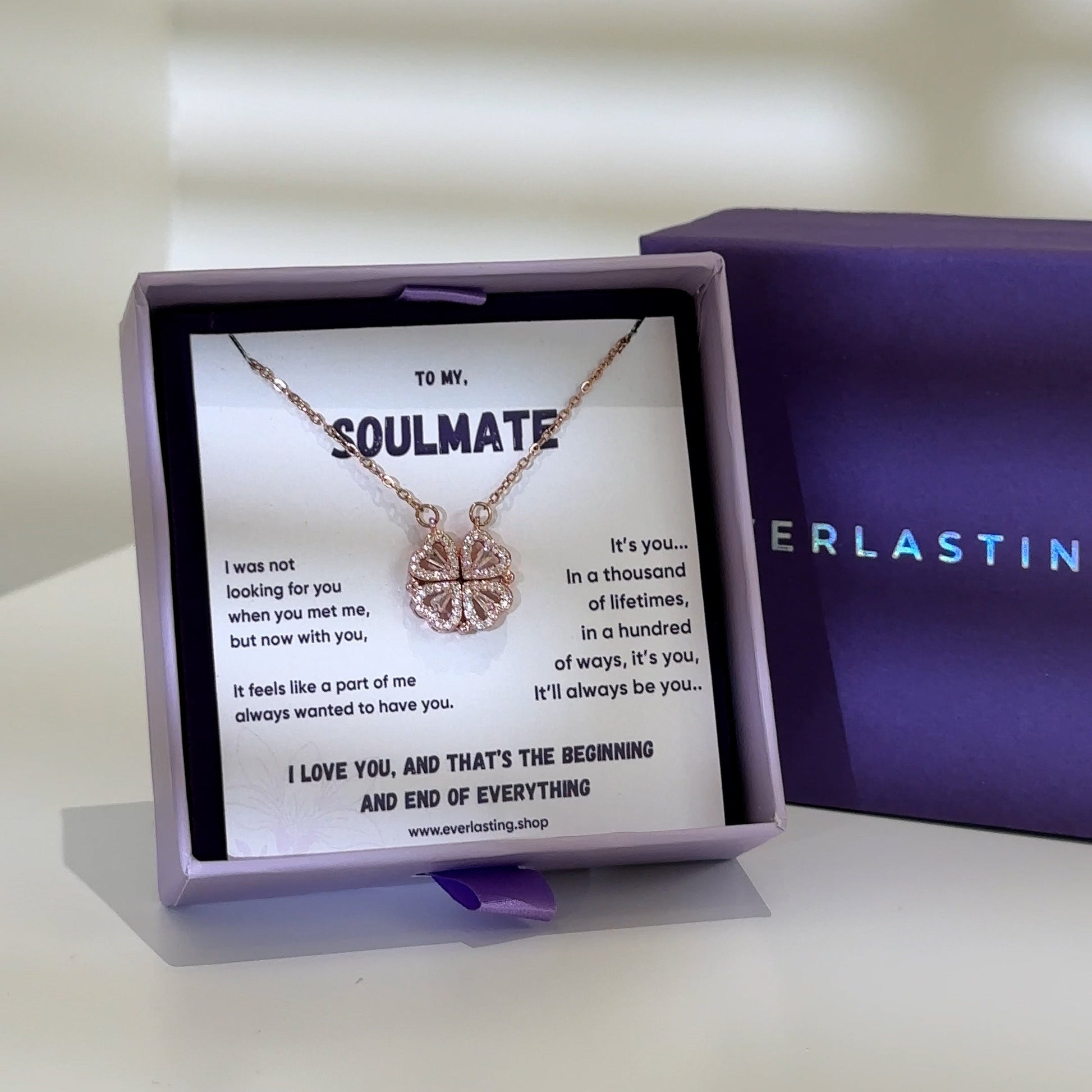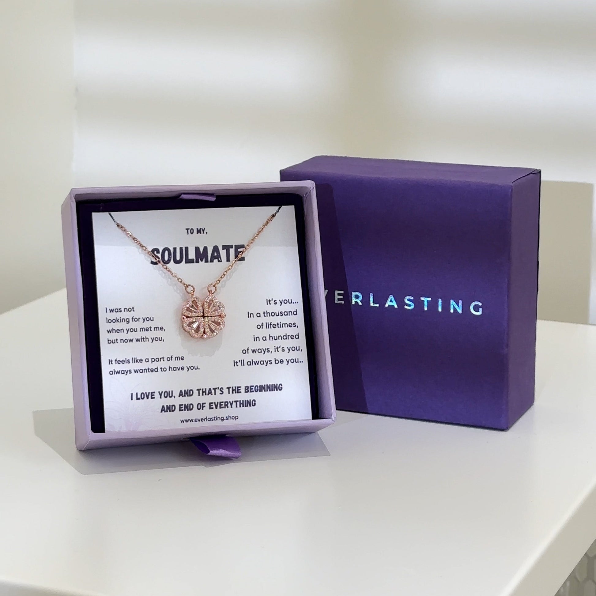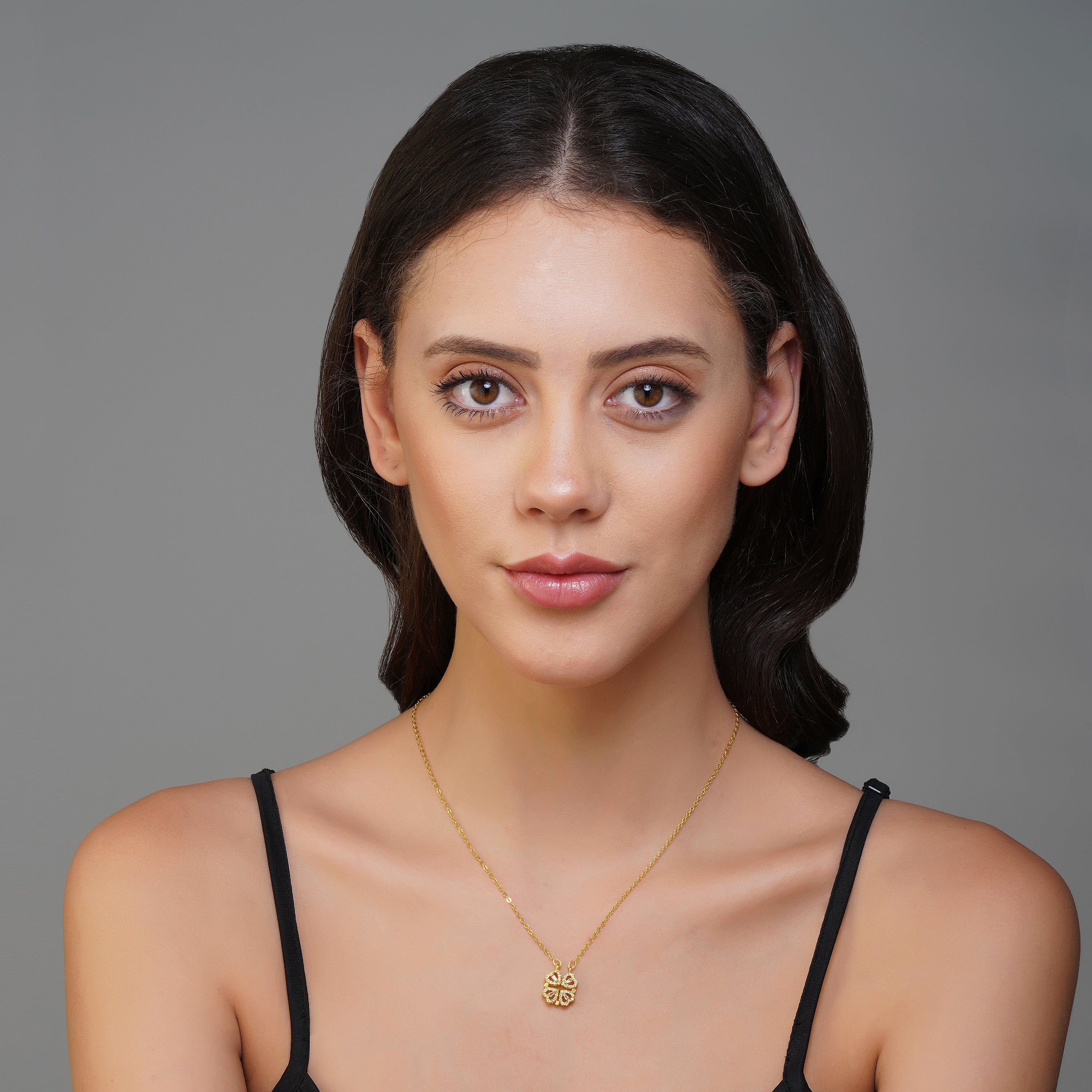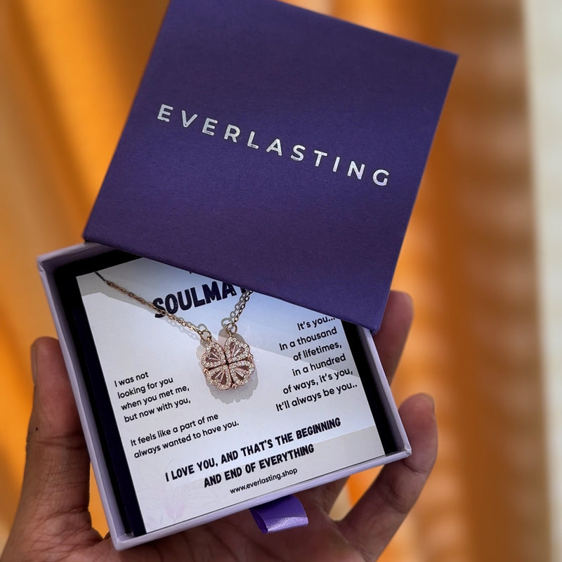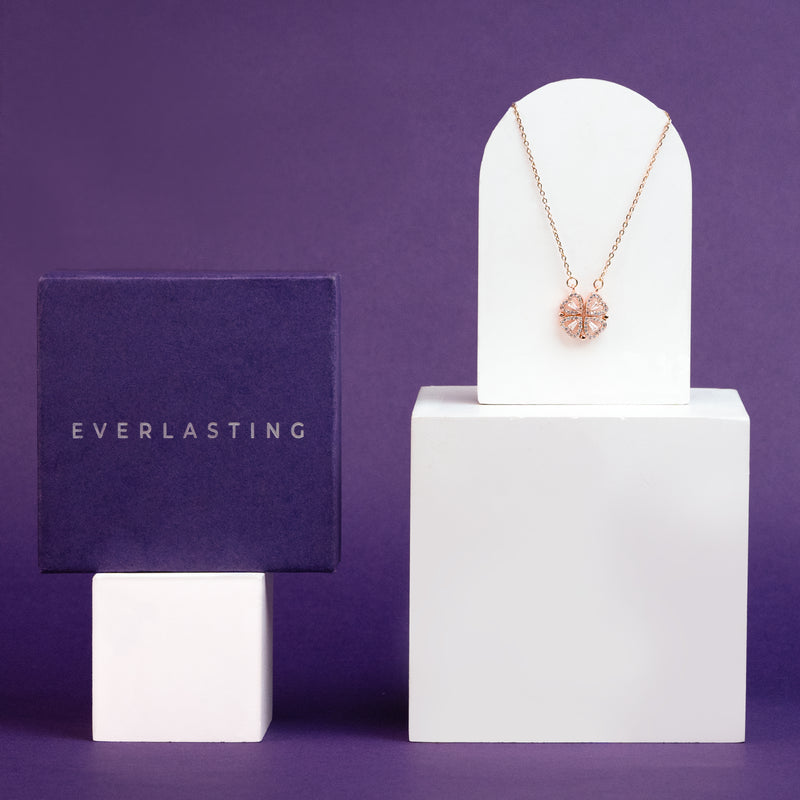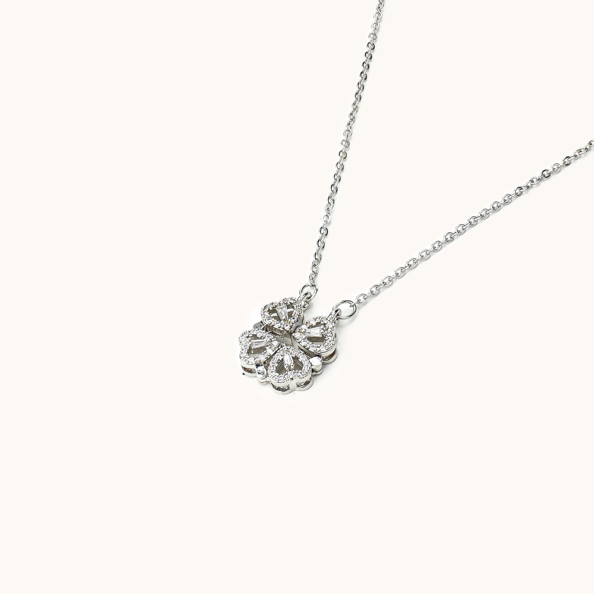 Set in an exclusive magnetic-connection design, our Love Heart Necklace magnetically joins four hearts into a lucky clover. This is a unique & amazing gift because you have different ways to wear this necklace.