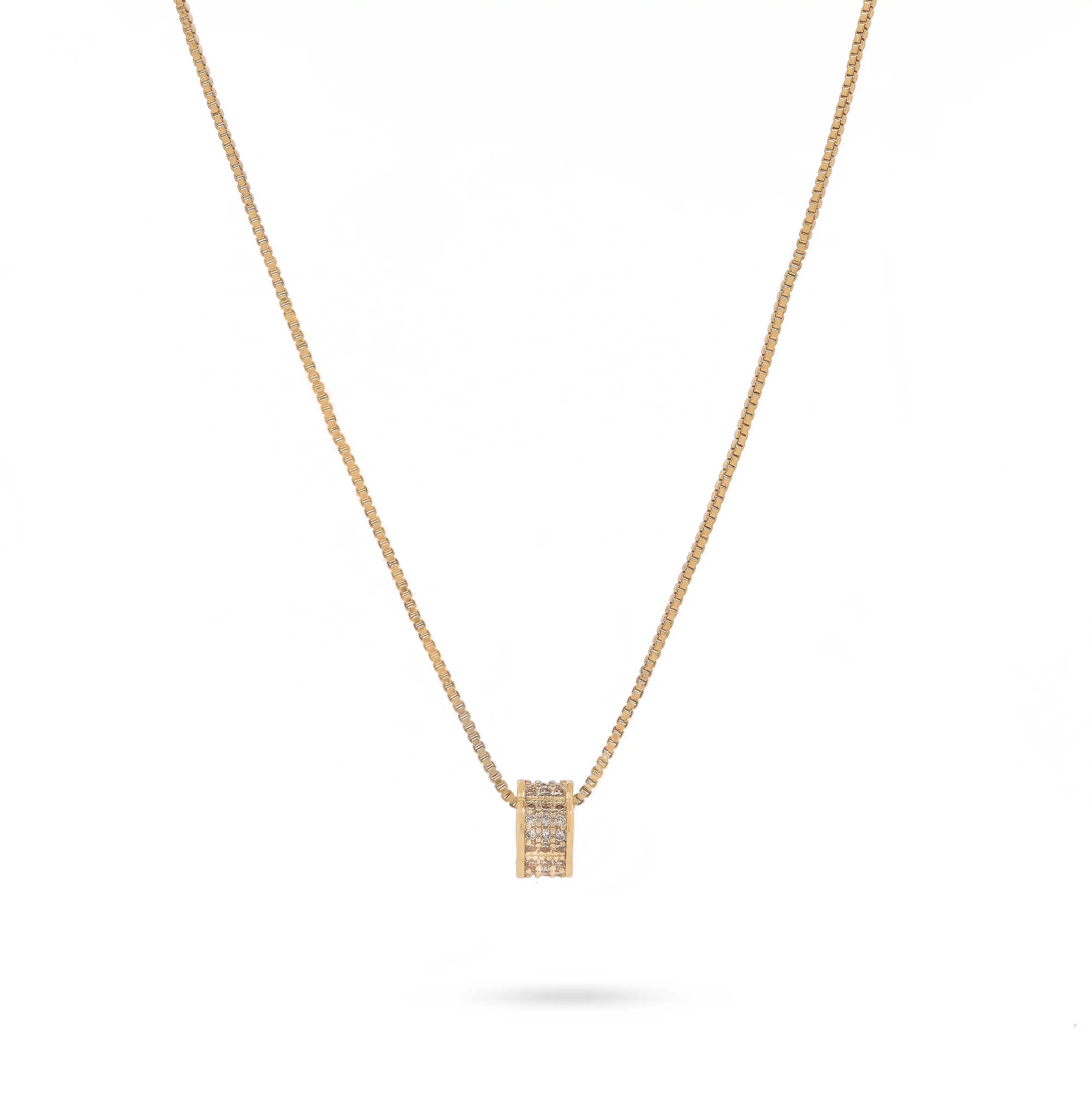 Add a touch of understated luxury to your look with the Luminous Charm Pendan. Featuring a sleek pendant encrusted with shimmering stones, this necklace radiates elegance and simplicity. Perfect for daily wear or special occasions, this versatile piece effortlessly elevates any outfit.