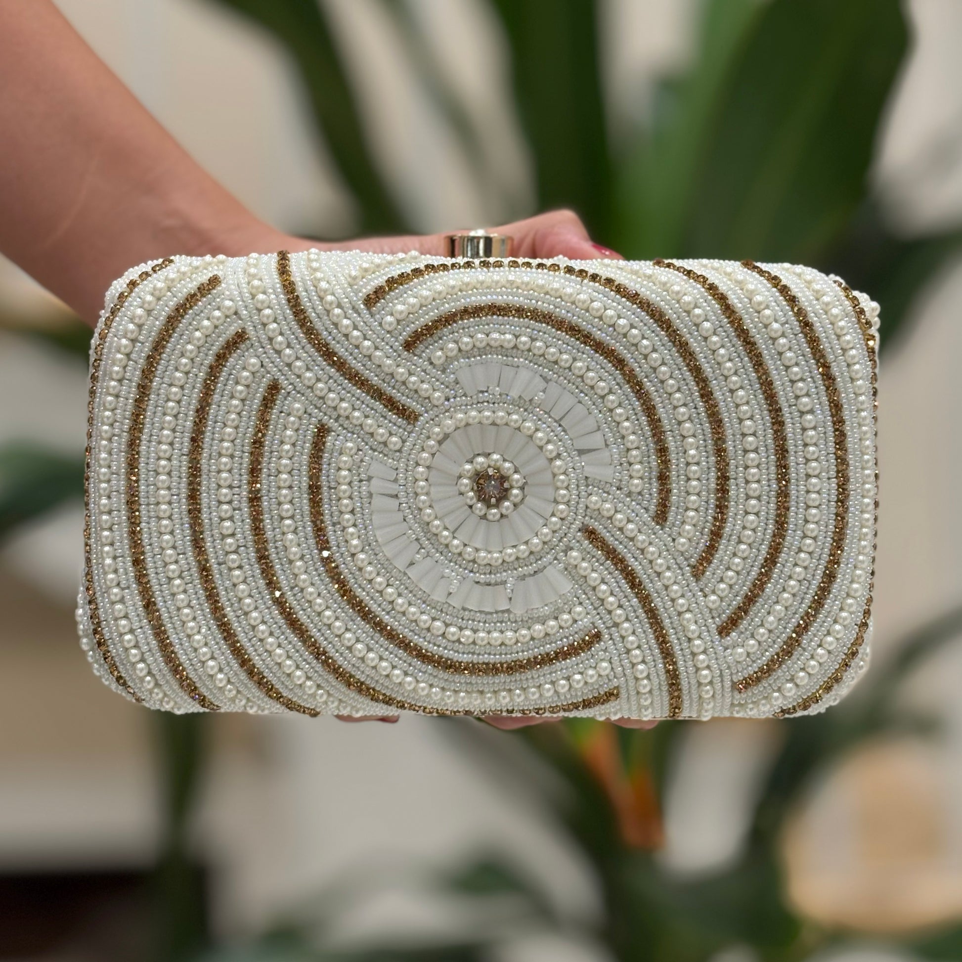 Maharani Clutch Elevate your evening with the Maharani Clutch—a stunning accessory that commands attention. This sophisticated piece combines luxurious craftsmanship with a compact silhouette, perfect for carrying your essentials while making an unforgettable impression. Designed for the woman who appreciates opulence without compromise, the Maharani Clutch transitions effortlessly from formal events to upscale gatherings. Its regal aesthetic and impeccable construction ensure you'll reach for it again and again, making it an investment in timeless style that truly sets you apart.