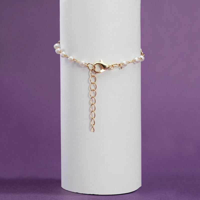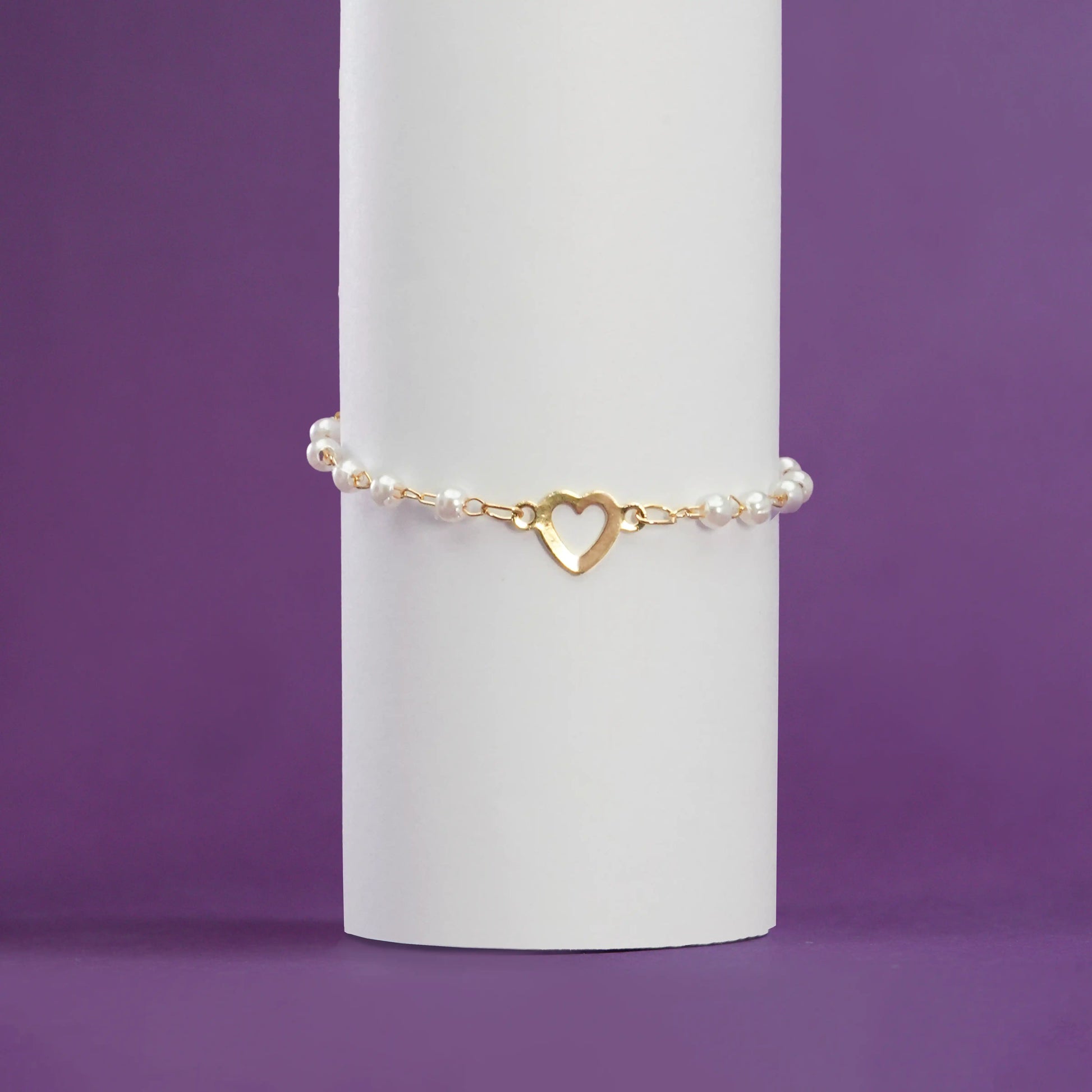 Elevate your style with the Pearly Heart Bracelet, a stunning blend of elegance and charm. Featuring a delicate chain adorned with a lustrous pearl and a dainty heart charm, this bracelet is the perfect symbol of love and grace.
