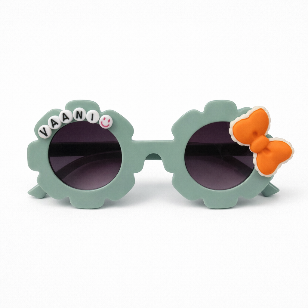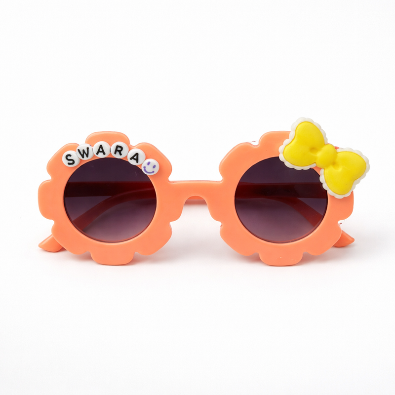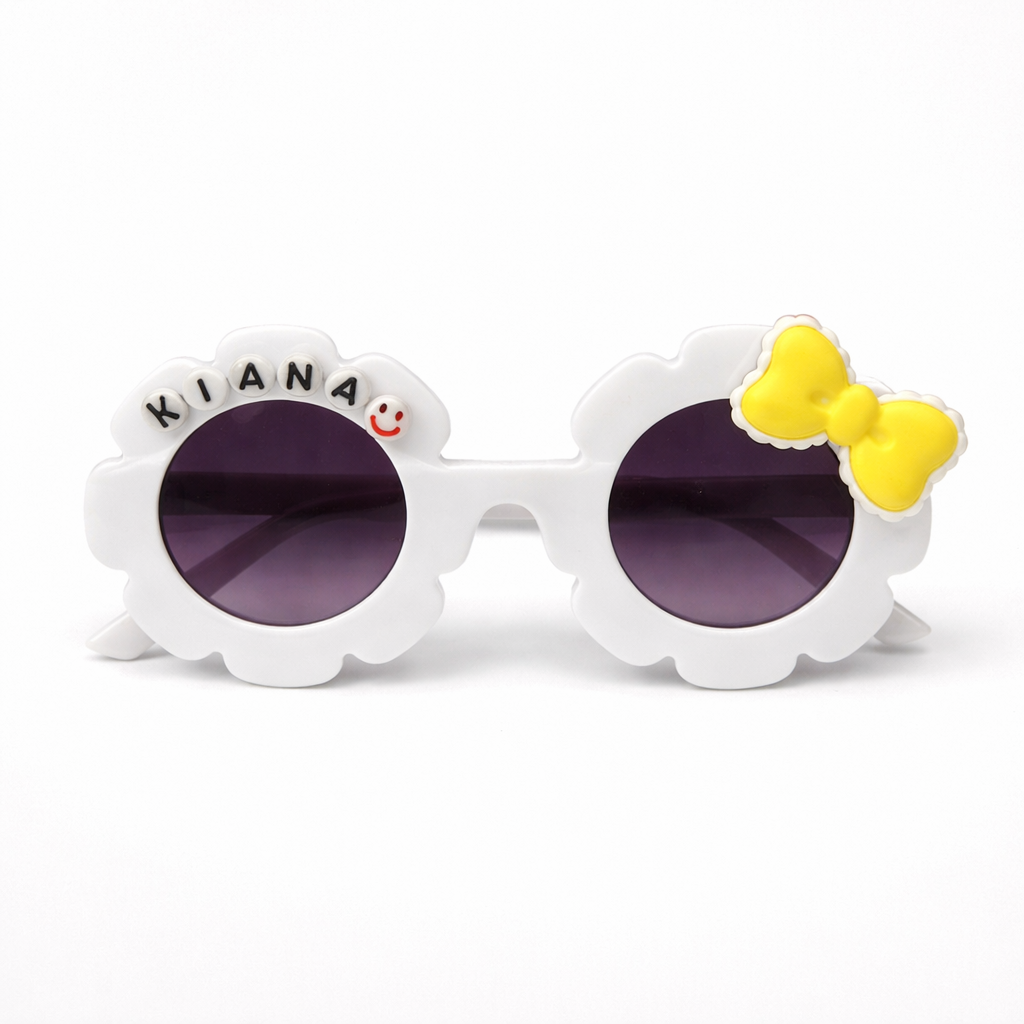Make your little one stand out with these cute and stylish personalized kids sunglasses! 💖 These trendy round-frame sunglasses feature colorful name letter beads on one side, allowing you to customize them with your child’s name for a unique and special touch. ✨