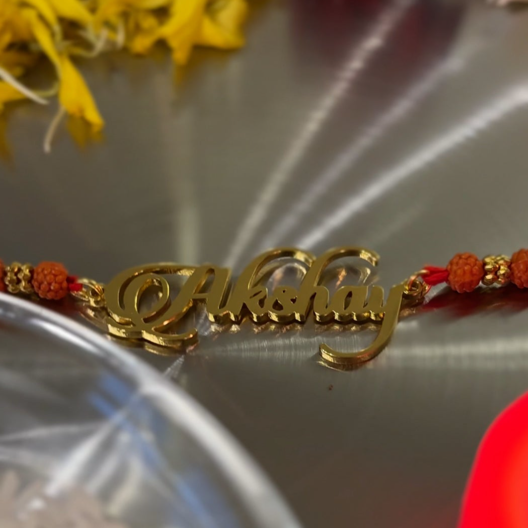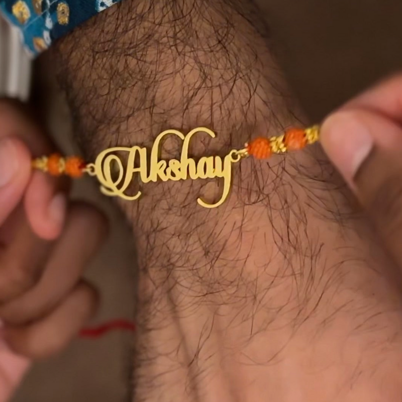 Celebrate the bond of love and protection with our Personalized Name Rakhi. This unique rakhi features your loved one's name intricately designed to add a personal touch to the festive occasion. Crafted with high-quality materials, it ensures durability and comfort. The rakhi is available in various designs and colors, making it a perfect choice for expressing your affection and making the day memorable for your brother.