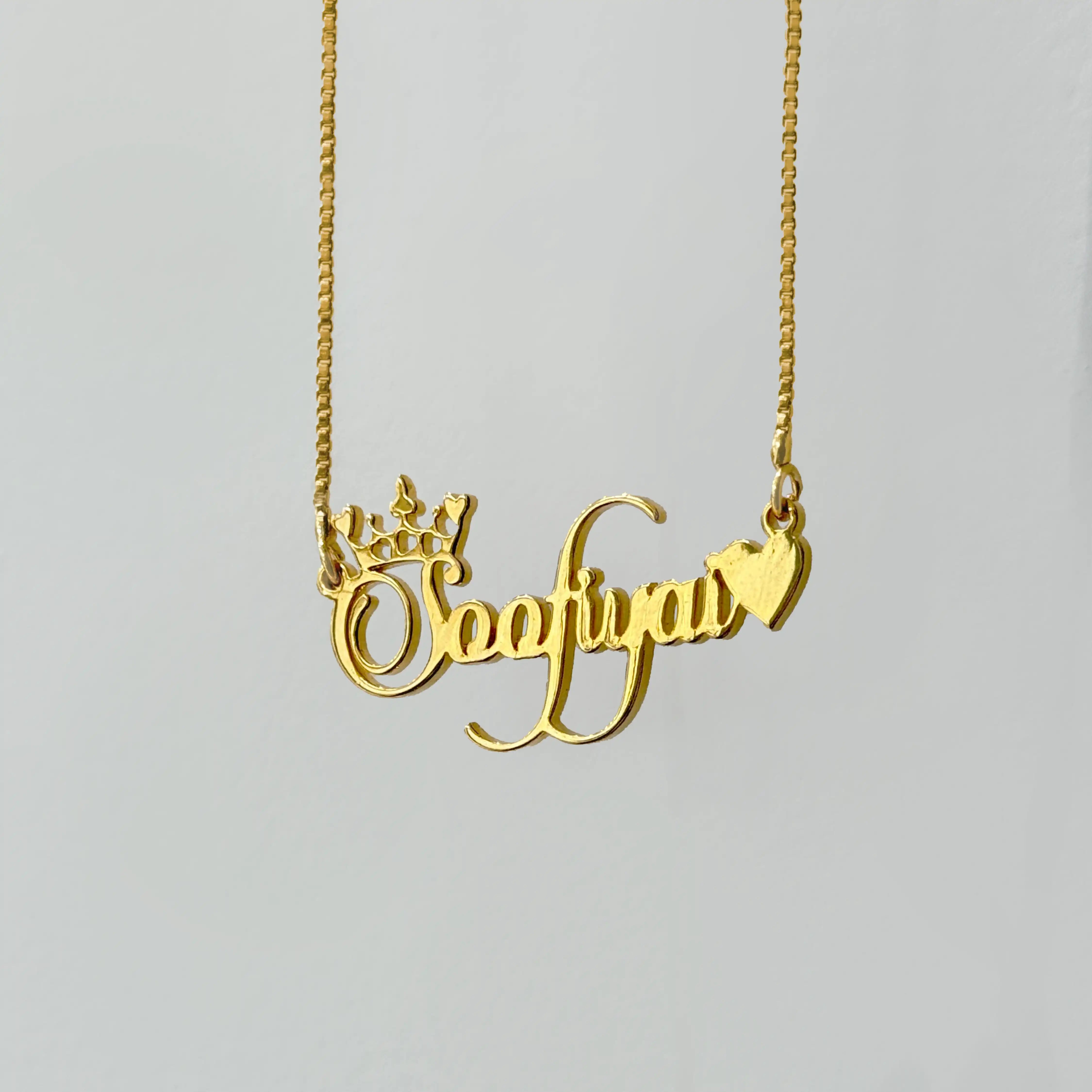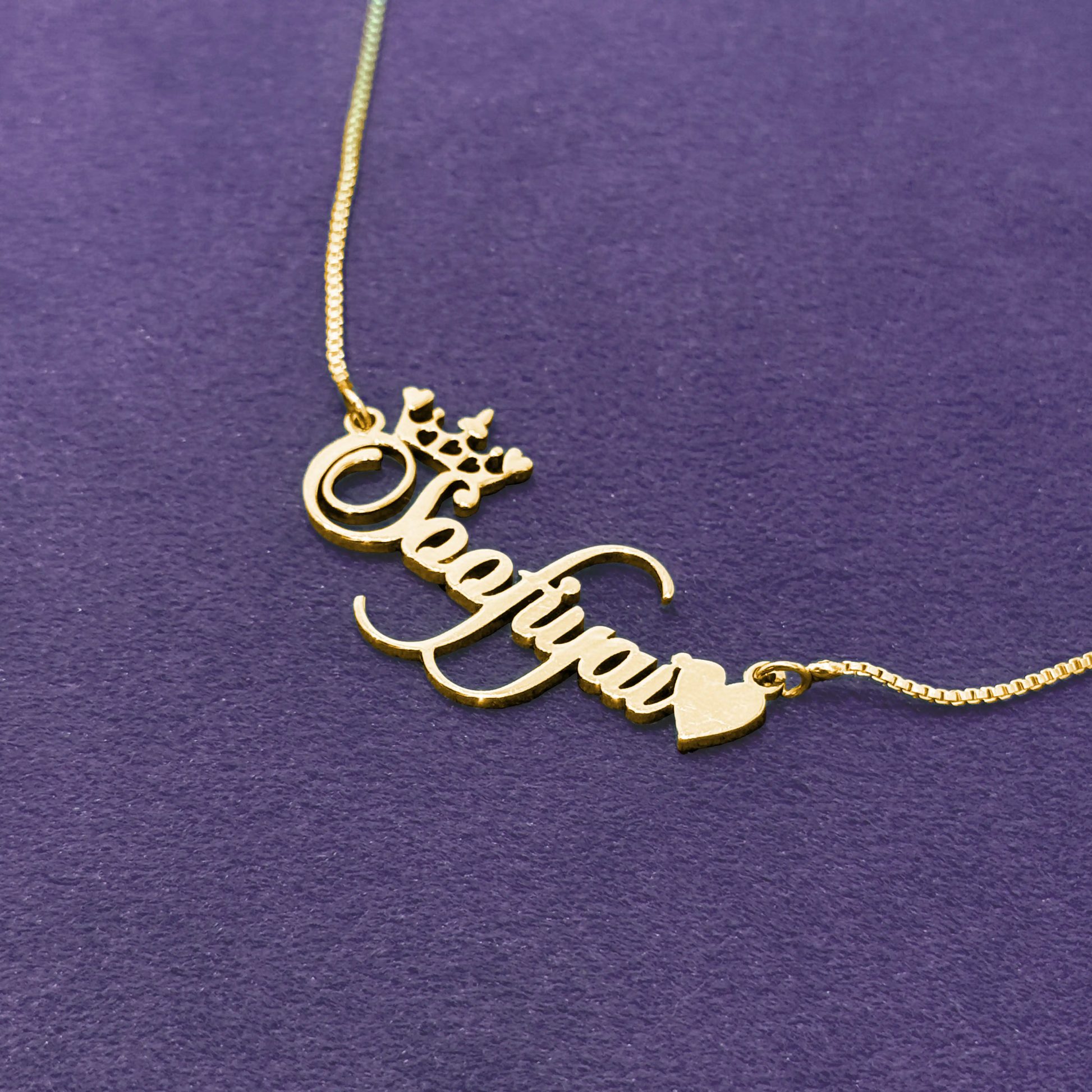Own your royalty with the Queen Name Necklace — a bold and beautiful piece designed to celebrate your identity with regal flair. Featuring a custom name design crowned with a delicate tiara and finished with a sweet heart accent, this necklace is a stunning way to express self-love or gift someone their royal title.