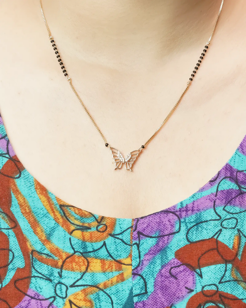 The Roshni Mangalsutra shines as a beautiful emblem of enduring love and commitment. Its elegant pendant and finely crafted chain harmonize traditional symbolism with modern design, providing both beauty and durability. Perfect for daily wear or special occasions, the Roshni Mangalsutra enhances your grace while celebrating the unique bond you share. Choose this timeless piece to honor your lifelong journey with sophistication and heartfelt meaning.