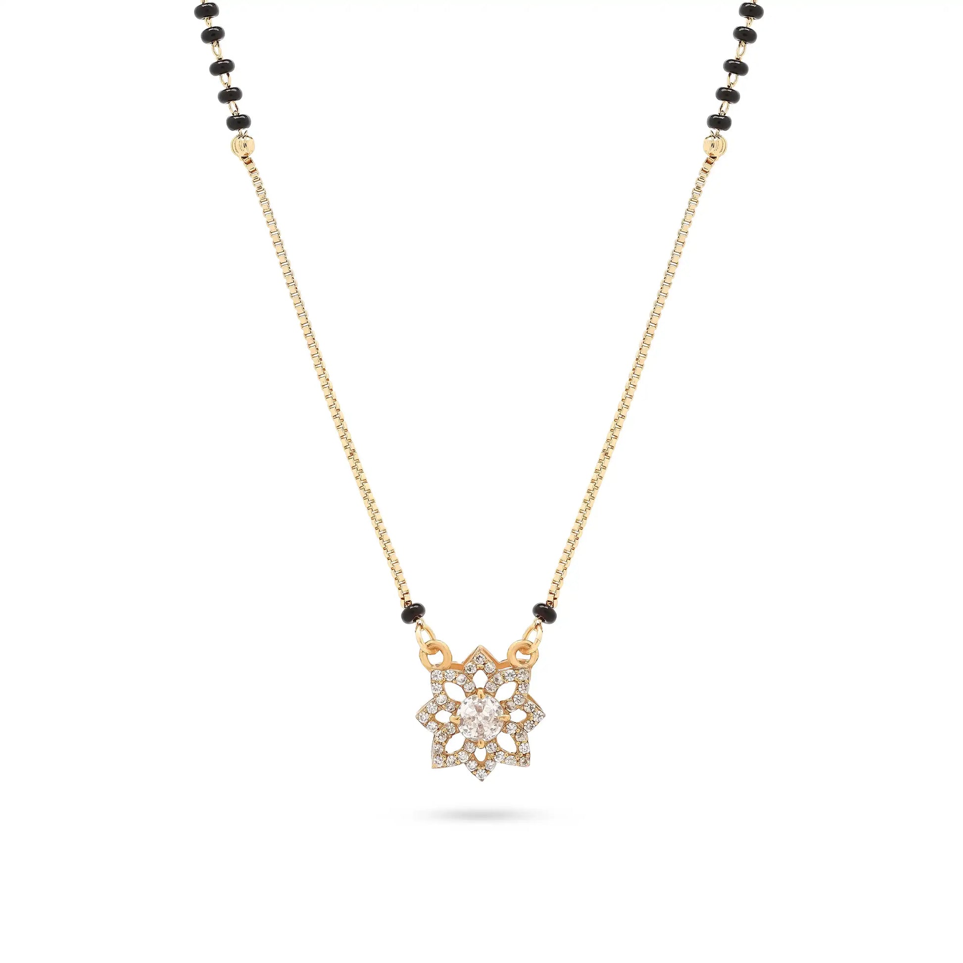 The Trisha Mangalsutra beautifully symbolizes the strength and elegance of your bond. Featuring an intricate pendant paired with a durable, stylish chain, this piece merges timeless tradition with modern design. Perfect for everyday wear or special occasions, the Trisha Mangalsutra enhances your charm while honoring your lifelong commitment with grace and sophistication. Choose this exquisite accessory to celebrate your unique love story.